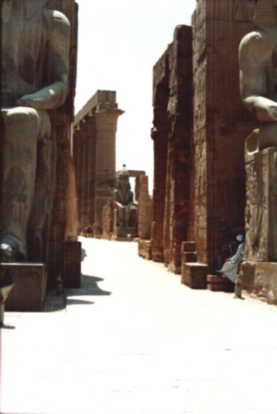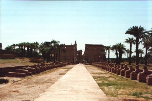 Le grand temple de Louxor avec l'allée des Sphinx qui allait jusqu'à Karnak. |