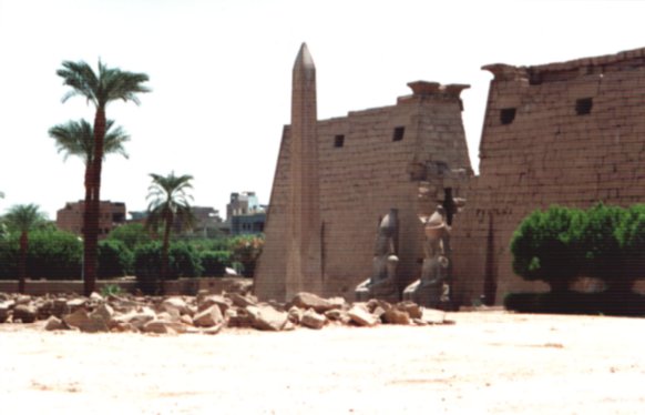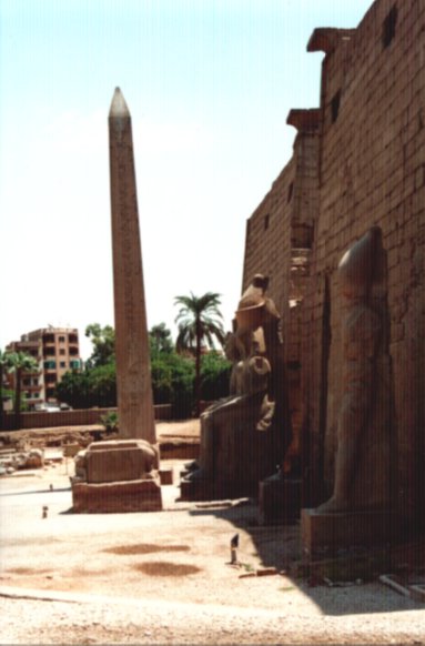 Obélisque restant, l'autre est place de la Concorde. Statues colossales de Ramsès II. Pylône |